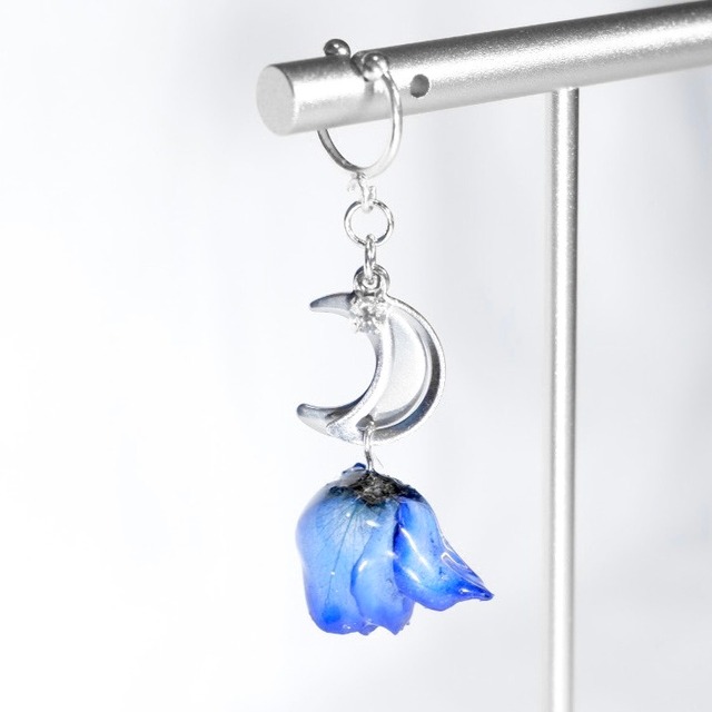 シルバー|選べるカラー|月と薔薇のイヤーカフ