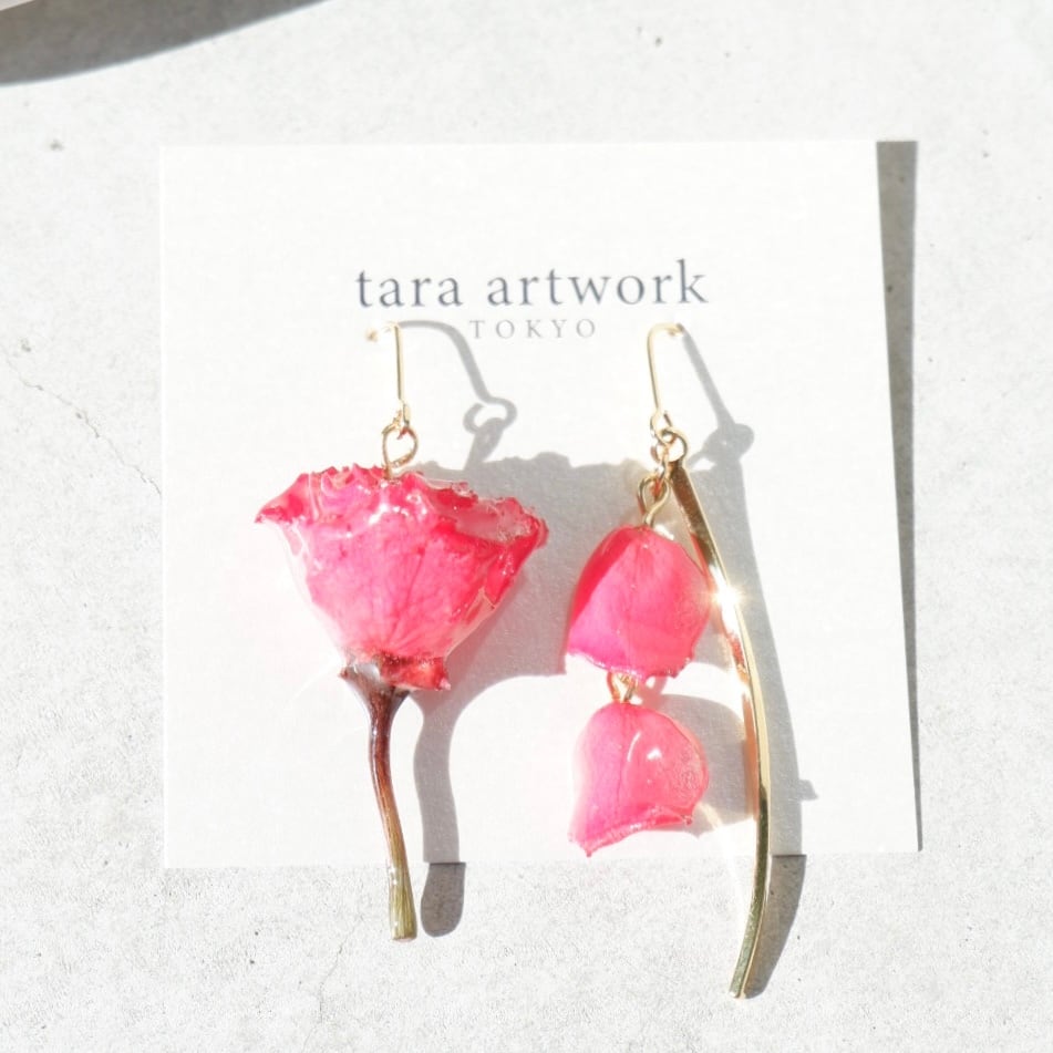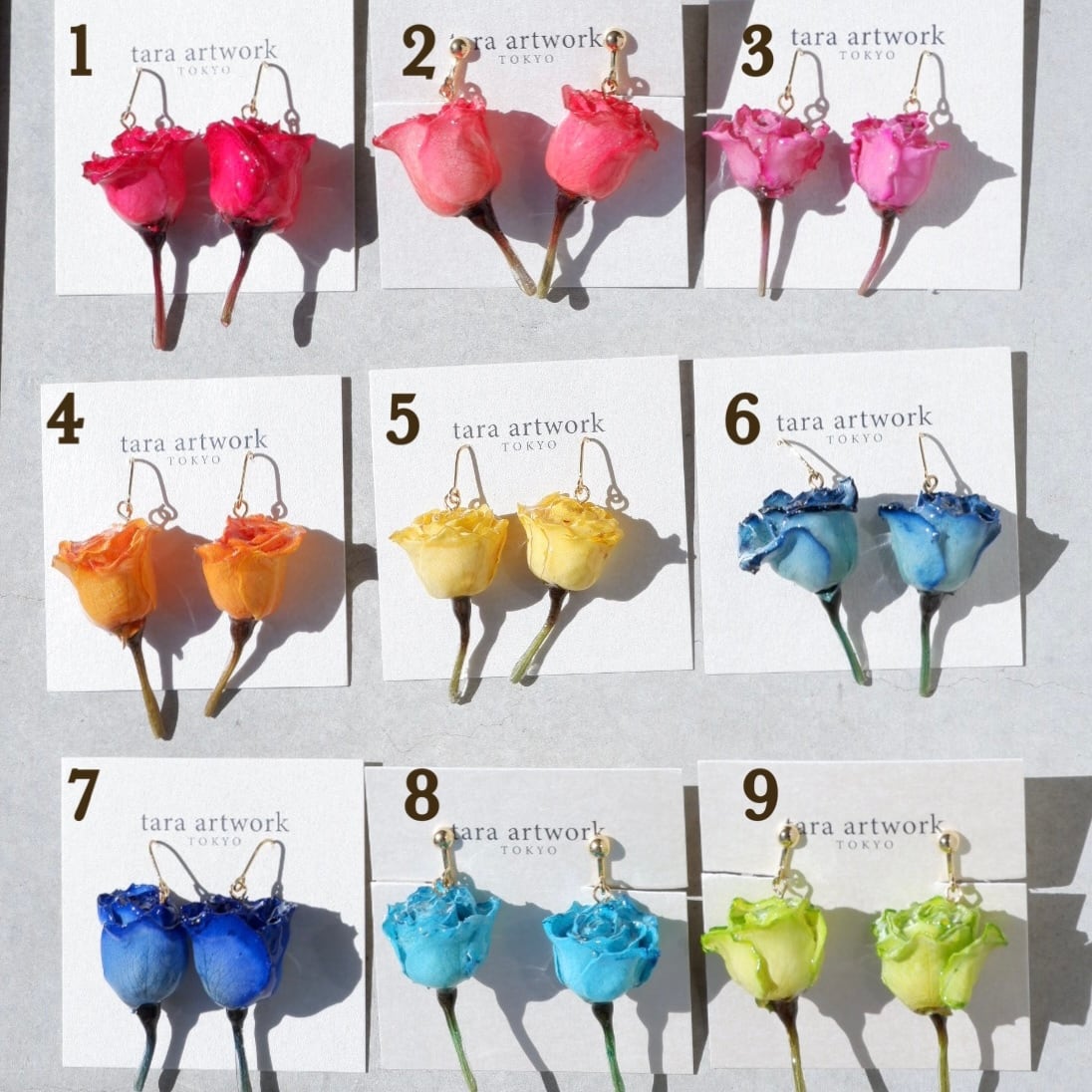 tara artwork のアクセサリーは、本物の薔薇を使用し、着色・乾燥・コーティングを丁寧に施しています。