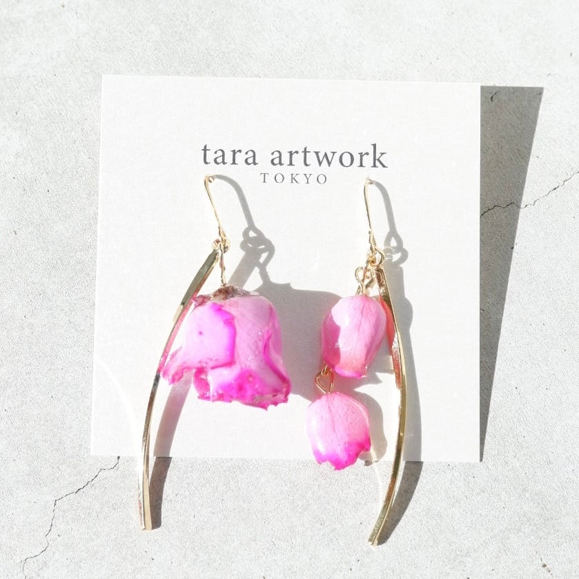 tara artwork のアクセサリーは、本物の薔薇を使用し、着色・乾燥・コーティングを丁寧に施しています。