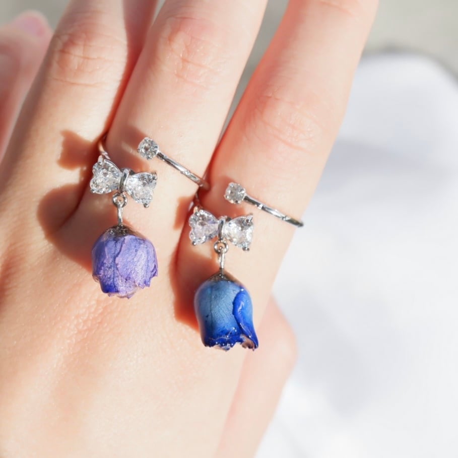 シルバー | 選べるカラー | 本物の薔薇のリング