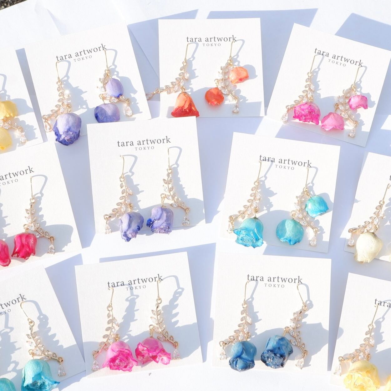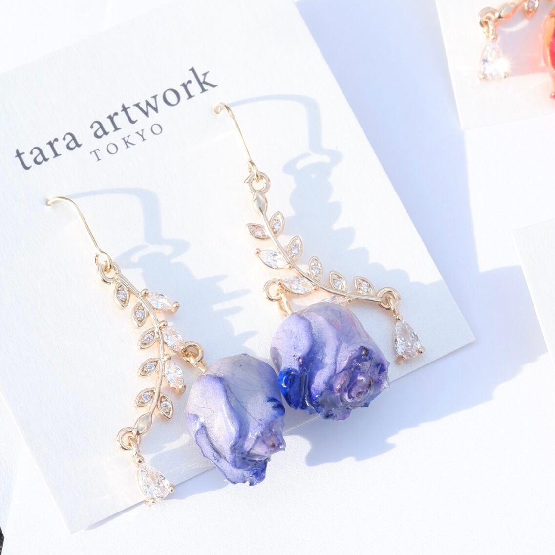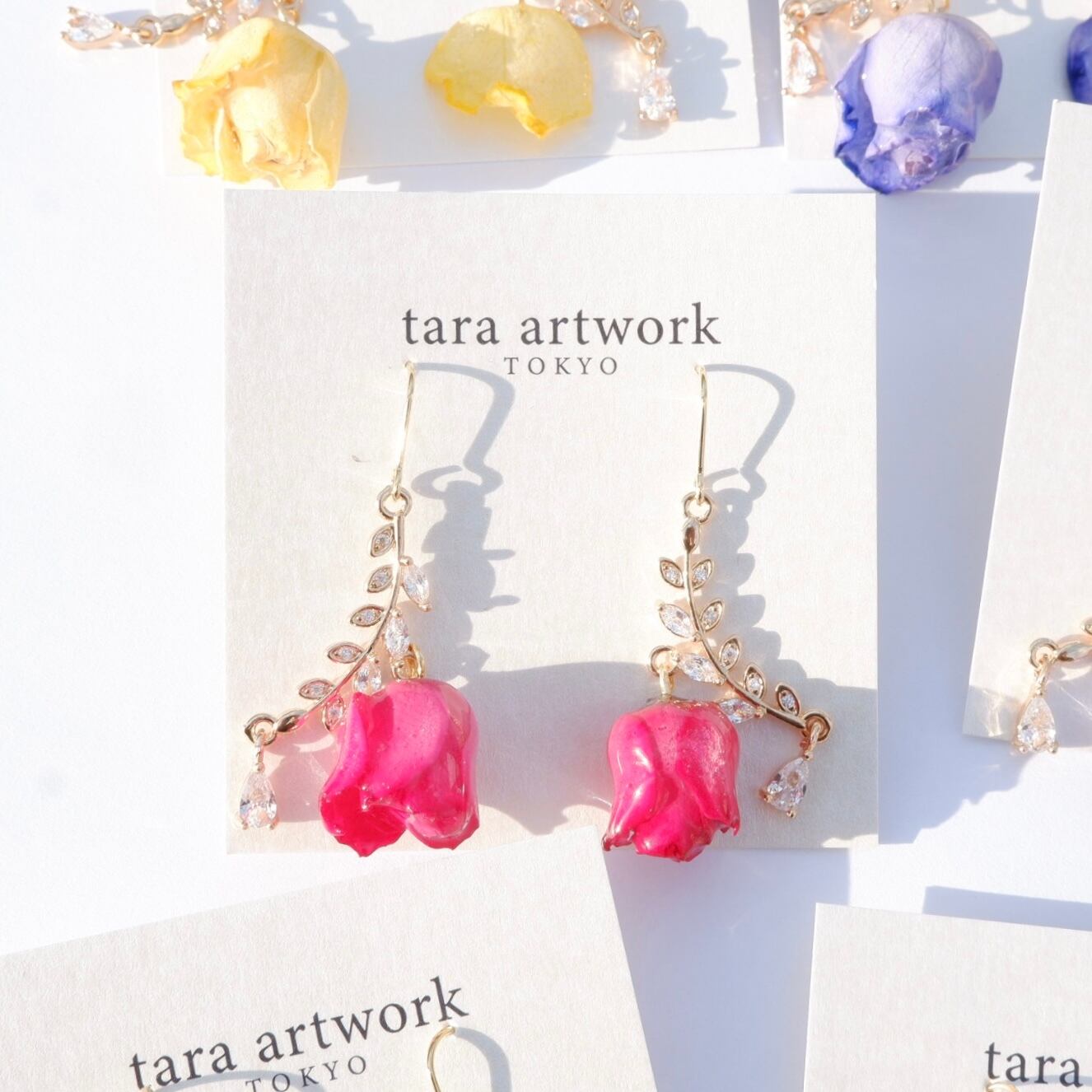 tara artwork のアクセサリーは、本物の薔薇を使用し、着色・乾燥・コーティングを丁寧に施しています。