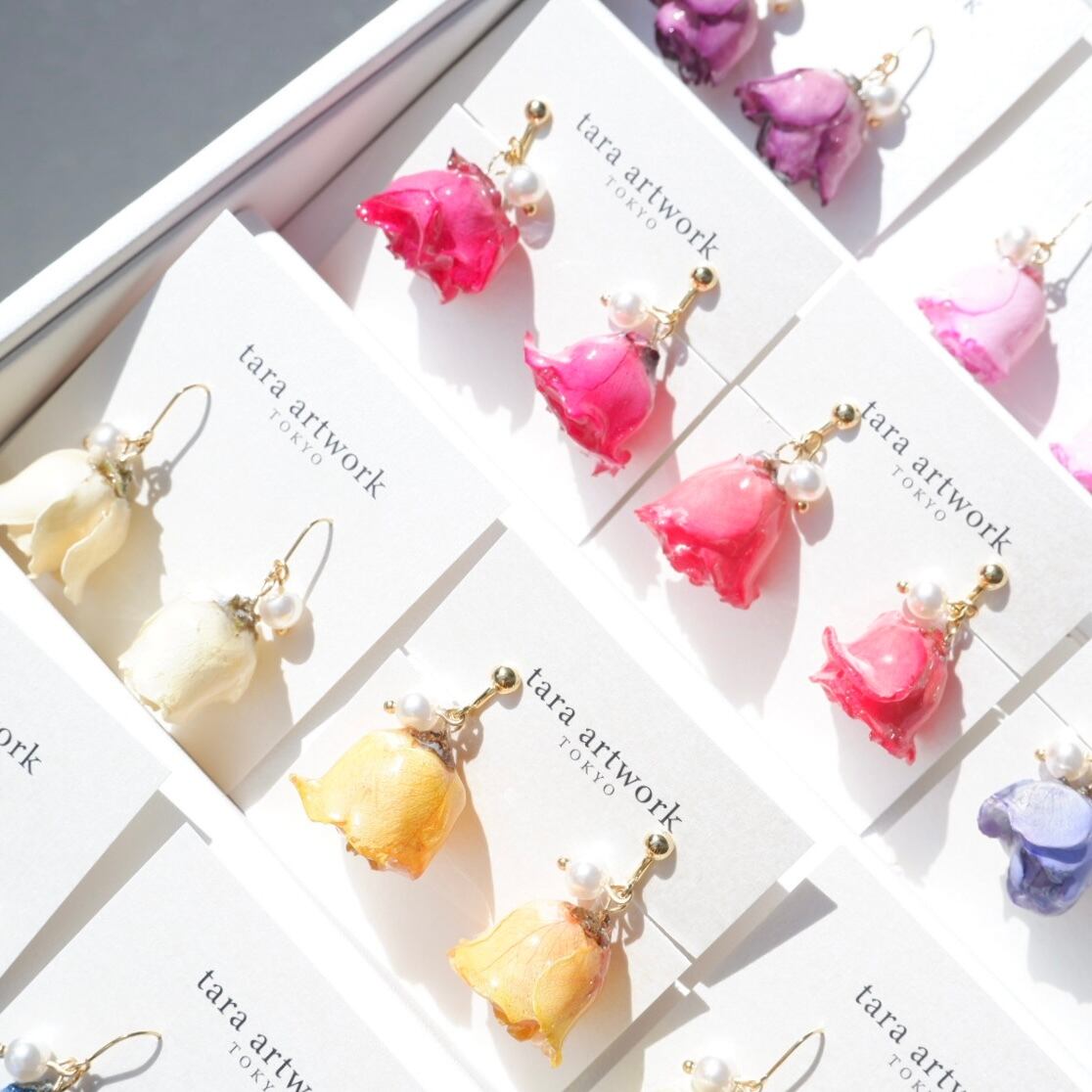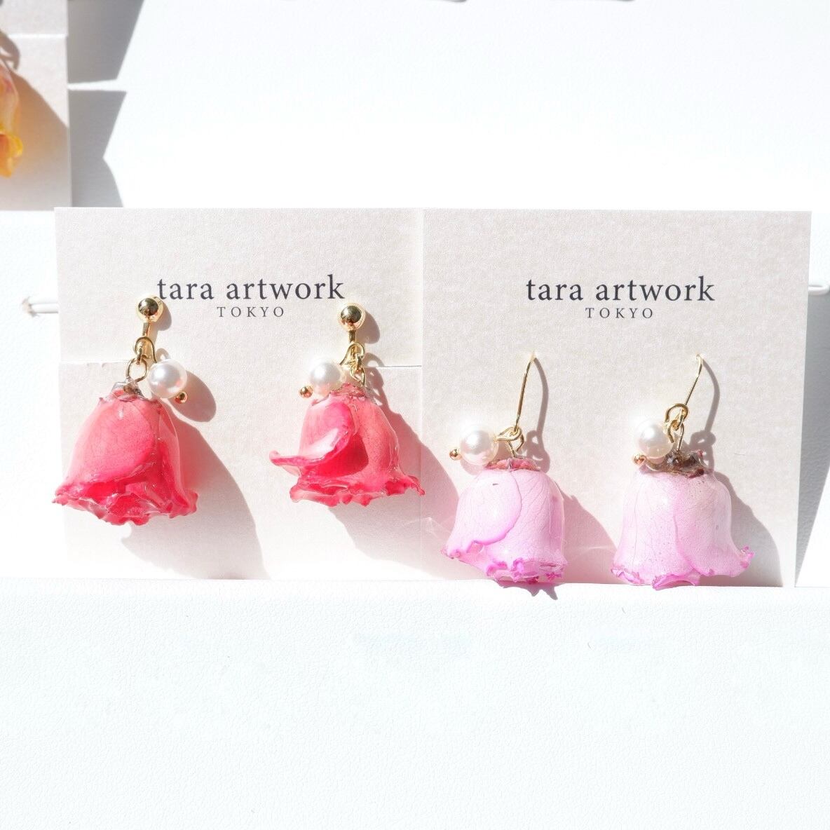 tara artwork のアクセサリーは、本物の薔薇を使用し、着色・乾燥・コーティングを丁寧に施しています。