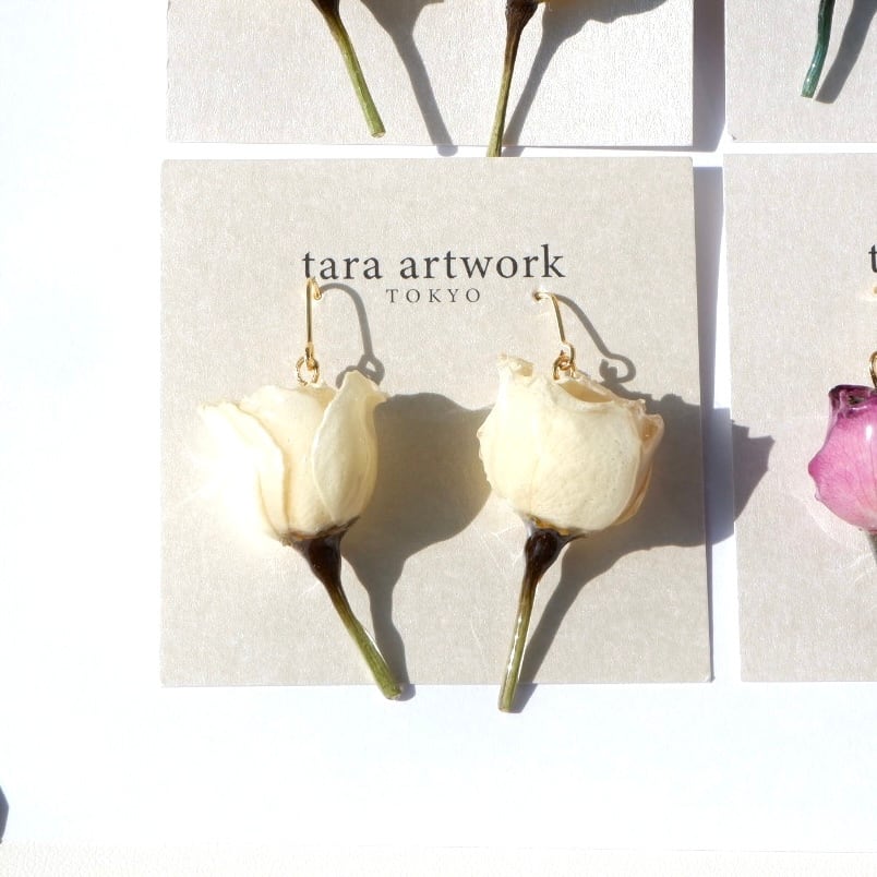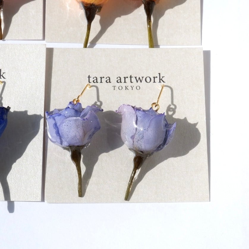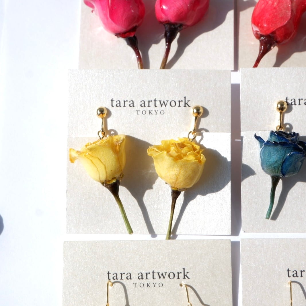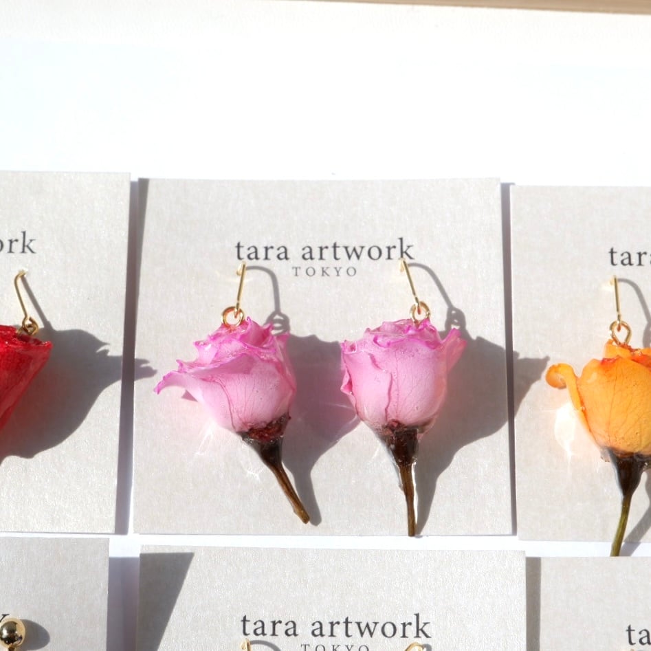 tara artwork のアクセサリーは、本物の薔薇を使用し、着色・乾燥・コーティングを丁寧に施しています。