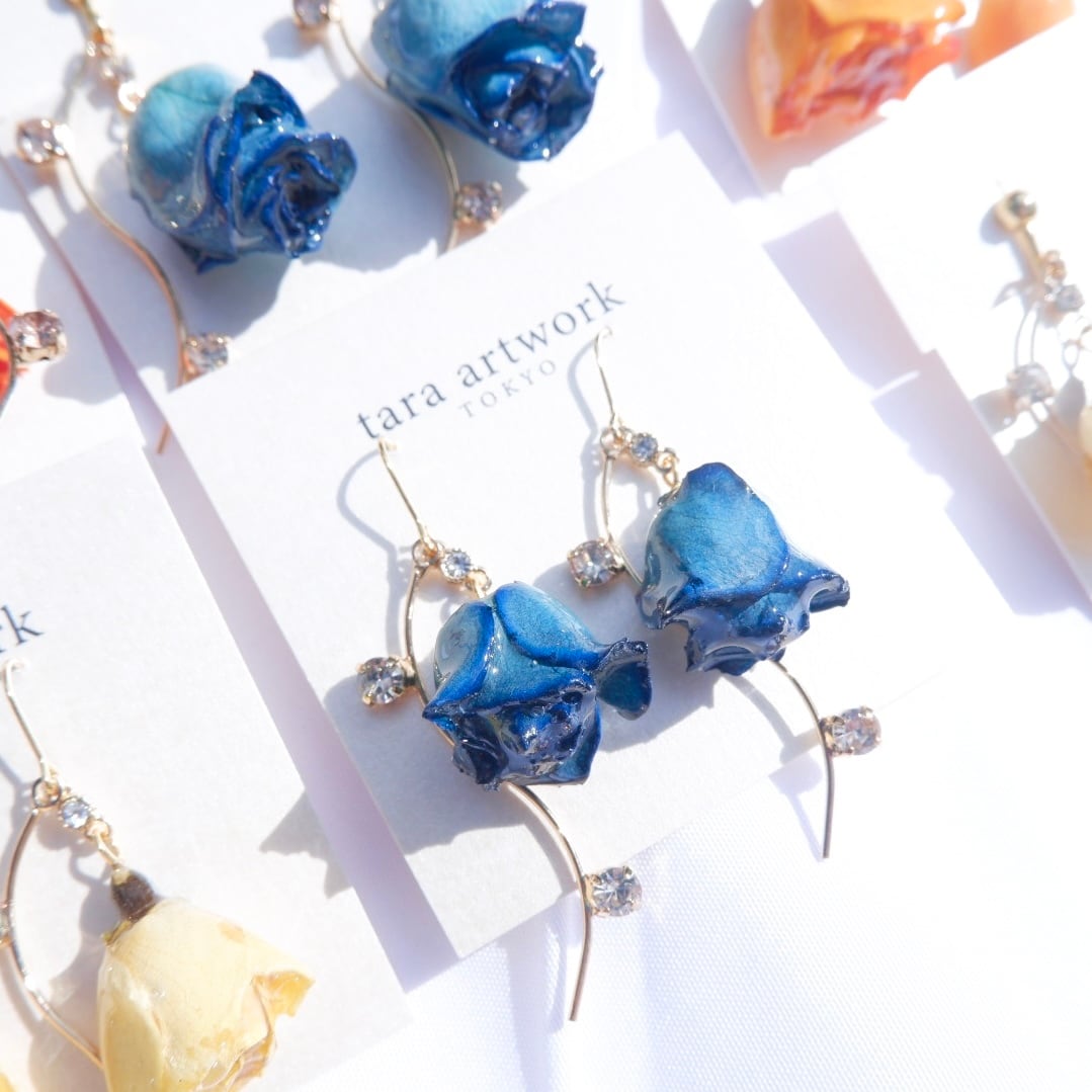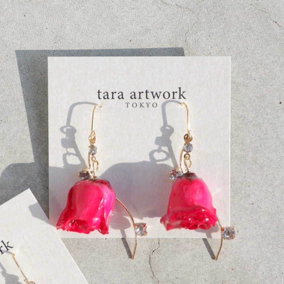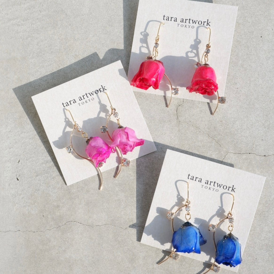 tara artwork のアクセサリーは、本物の薔薇を使用し、着色・乾燥・コーティングを丁寧に施しています。